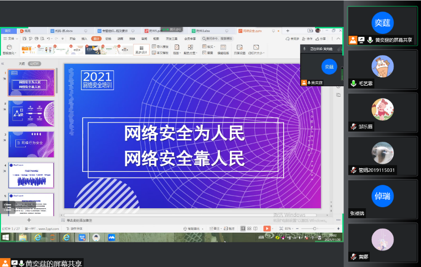 为了让网络安全意识内化于心、外践于行,心理2019-01班于2021年11月20日20:00举行了专题组织生活会暨“网络安全周”活动。应3d色情