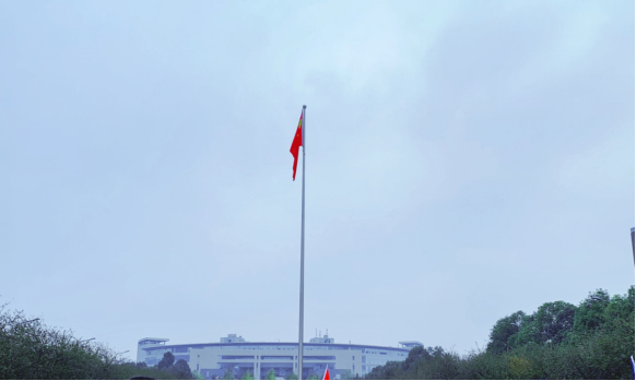 乃至全校同学的注目礼下,国旗冉冉升起,迎风飘扬。