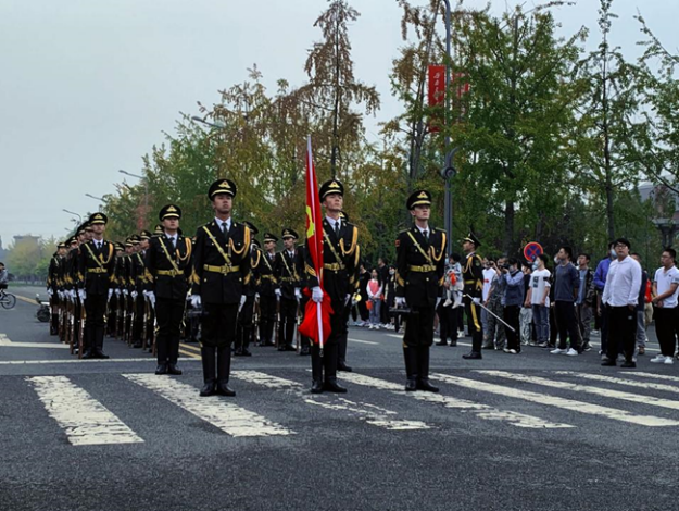 的同学们向他们投去了崇拜与尊敬的目光,大家自发地为国旗护卫队队员们摄像留影,记录着这意义重大的一刻。
