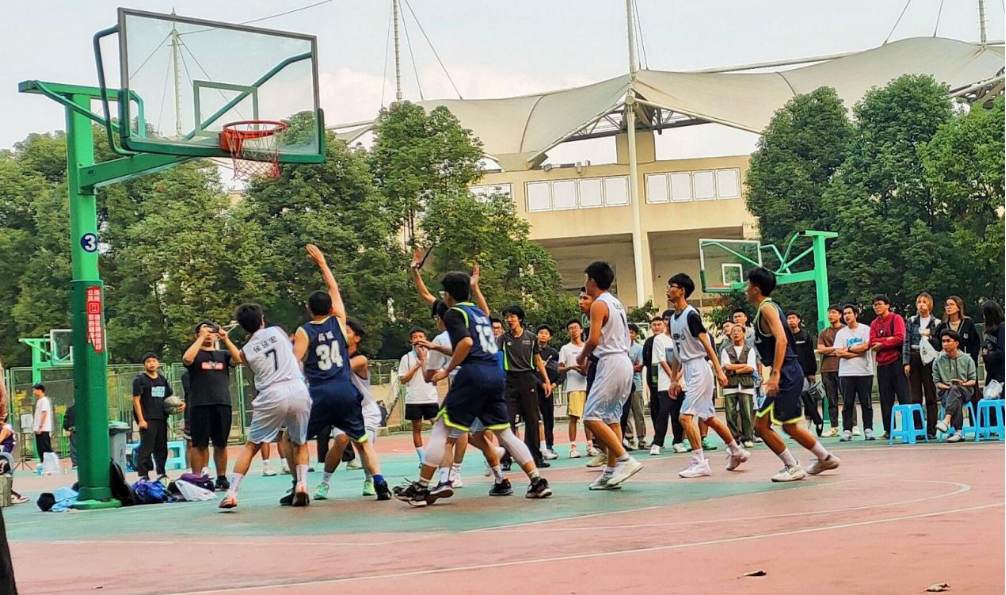 比赛过程中,参赛的队员们迅速进入了比赛状态,在赛场上尽力协作配合,奋力跑动跳跃,竭力传球投篮,每一位队员都竭尽自己所能。场外的同学们更是热情高涨,队员们每一次精准的抢断、帅气的投篮,都能引来场外热烈的欢呼声,而在中心队伍落后时,场下也不断传来加油声,鼓舞着球队的士气。整个赛场被热血青春,友爱团结的氛围包裹着。