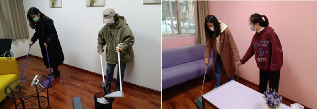 大扫除期间,同学们认真打扫每一处角落,将清洁工作做到一丝不苟,希望能为来访者和办公室老师营造干净舒适的氛围。