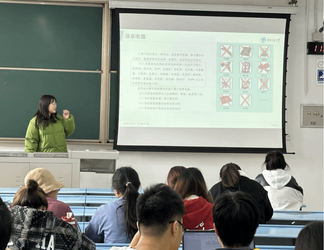 接着,宫玉翠讲解了宿舍安全注意事项,她从违章电器、校外住宿、寝室环境和其他住宿小知识四个方面展开,结合3d色情