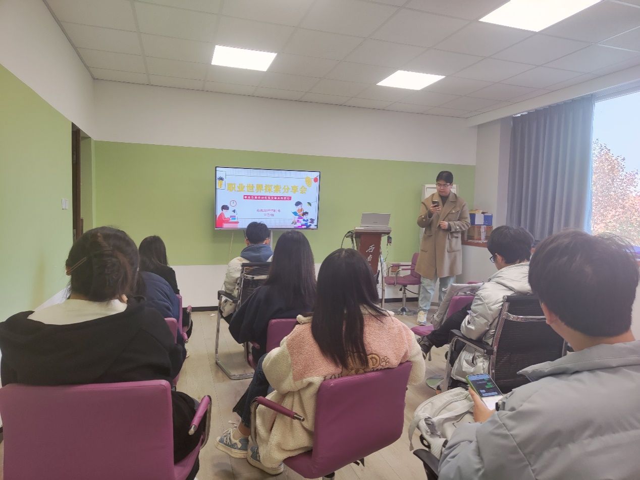 紧接着,各组派代表分享职业探索成果。通过对学长、学姐进行访谈,同学们对很多职业如考研讲师、心理老师、选调生、公务员、心理咨询师、产品设计师等职业有了初步了解。这次活动让我们做好职业生涯规划,对于未来职业有了清晰的认识与明确的目标,在今后学习生活中可以把求职活动付诸实践。