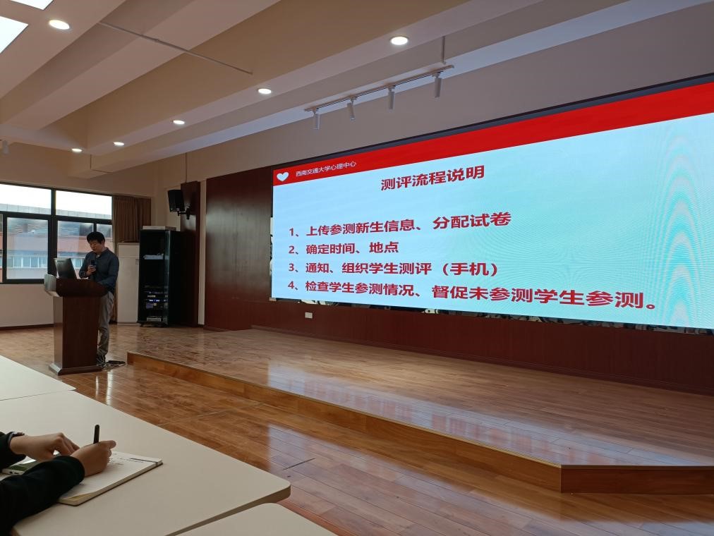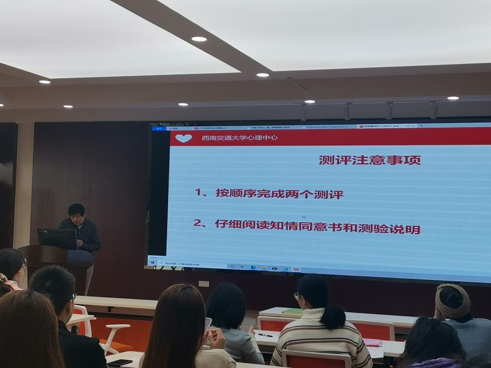 随后,肖放老师对测评工作的具体实施和操作进行了详细的解读,蒋洪波老师介绍了心理测评的整体情况并再次强调了新生心理测评的重要意义。
