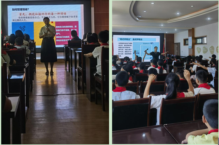 唐静、冯果老师为三界小学的六年级1-4班共200名学生开展了名《善爱我-情绪压力调适》的减压团体活动,并与小学班主任交流心理健康教育过程中的困难与压力,助力小学教师的育人工作。