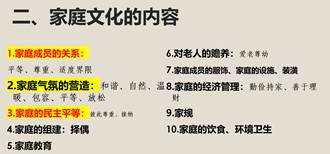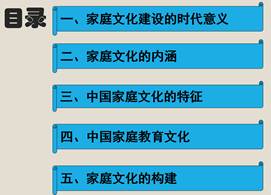 唐静老师从五个方面来讲解家庭文化建设。第一是家庭文化建设的时代意义;第二是家庭文化的内涵;第三是中国家庭文化的特征;第四是中国家庭教育文化;第五是家庭文化的构建。