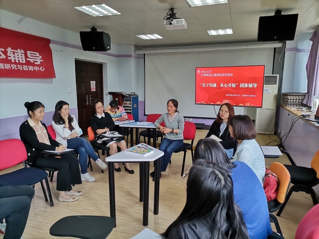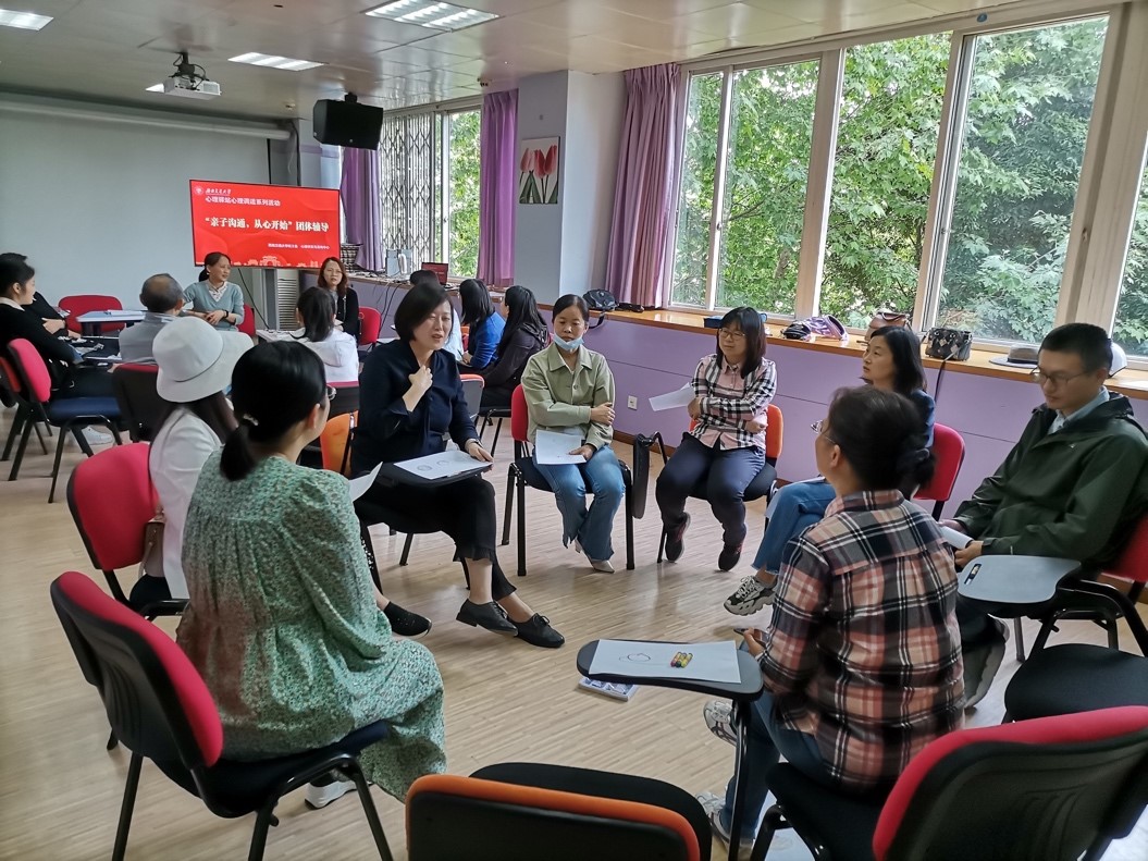 亲子沟通是影响家庭关系的一个核心且基础的部分。它既是父母了解子女行为与心理的重要手段,也是影响子女认知和情感发展的重要因素。良好的亲子沟通有利于增加家庭成员之间的亲密程度,对家庭的每个成员的身心健康起到积极的作用。为关心关爱教职工,有效帮助他们化解心理困惑,提高亲子沟通能力,促进家庭和睦和谐,提升职工的幸福感和归属感,校工会与3d色情 ,以心灵驿站为依托,邀请汪小容、张涛两位专家,开展“亲子沟通,从心开始”团体心理辅导活动。