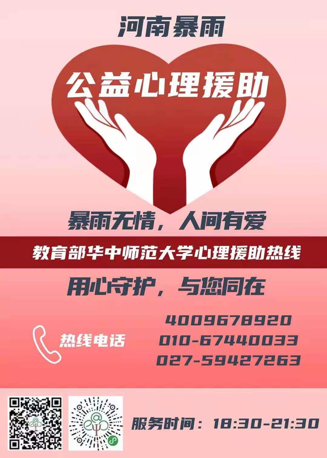 ——教育部华中师大心理援助热线: