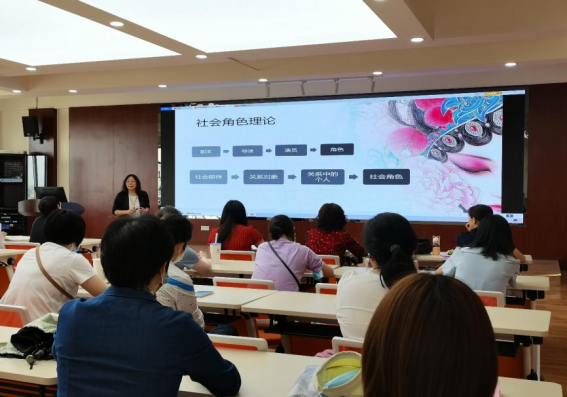 何立群副教授以社会角色理论作为依据,讲述社会角色是由社会期待,关系对象,关系中的个人这三个因素之间层层相互作用产生的。同时,何立群副教授也以自己的一些生活经历举例,讲述自己在婚姻情感家庭中的女性角色,其中的一些经历也引起了在场的大多数老师的共鸣,大家也互相交流互动,分享自己的经历。
