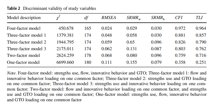 数据分析:研究使用Mplus 8.3进行多水平分析构建的两个模型,其中模型1主要检验每日优势使用的主效应以及每日Flow作为中介的间接效应,模型2主要检验加入每日对组织的感恩(GTO)作为调节后的中介效应。