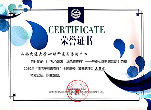 3d色情 科普基地荣获2020“清洁美丽青春行”全国高校小额资助项目三等奖