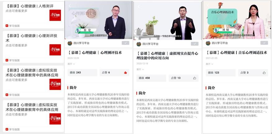 建设的《当代青年心理学(系列)》、《走进心理学》、《探索心理学》、《幸福心理学》4门心理健康通识慕课之前已被收入“学习强国”学习平台,供全国9千万多党员和广大社会群众学习。这是对近年来3d色情