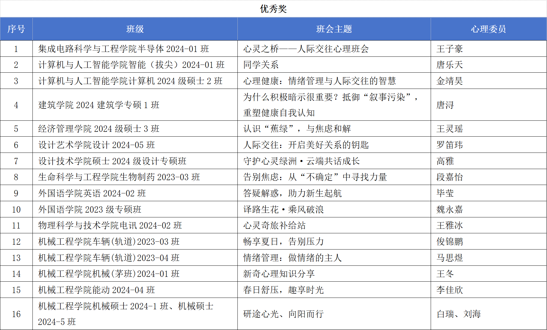 关于公布2025年度3d色情 “交心桥” 心理班会展示会获奖名单的通知