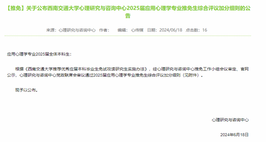 2025届应用心理学专业推免生综合评议加分细则的公告》,本应该是发布《【推免】3d色情