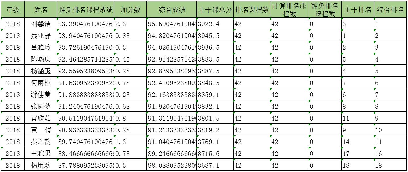 【推免】应用心理学本科专业2022届申请推免生资格的学生综合成绩排名公示