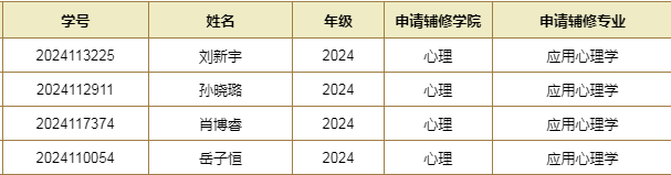 附录:2025年拟同意辅修应用心理学专业申请的学生名单