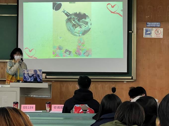 最后是宣传画大赛最终获奖人员的评选,主持人也是十分细心地将时间卡在了下午3:25开始进行最后结果的展示。评选所采取的方法是由各参赛者进行现场讲解,再由评委打分,然后统计分数评选出最后的一、二、三等奖。