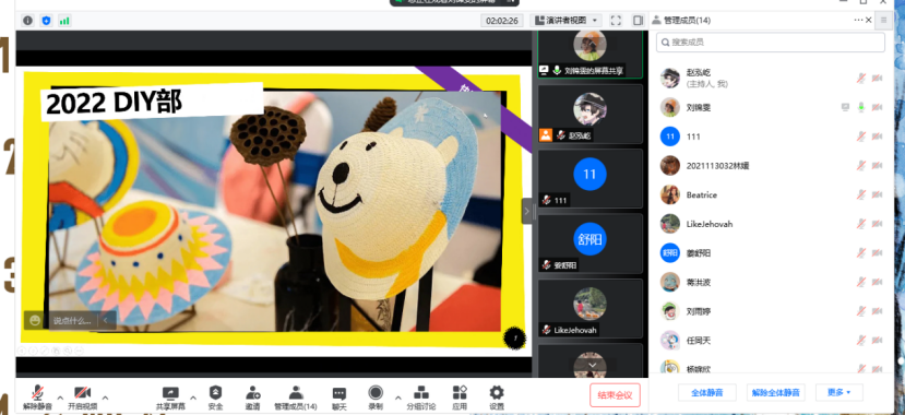 2022 年5月26日晚上八点,3d色情 创造学会在腾讯会议举办了创造学会换届大会。本次换届大会由会长赵泓屹同学主持,绘影部姜舒阳同学策划,出席本次大会的有创造学会全体会员,各部门参与竞选的干事。